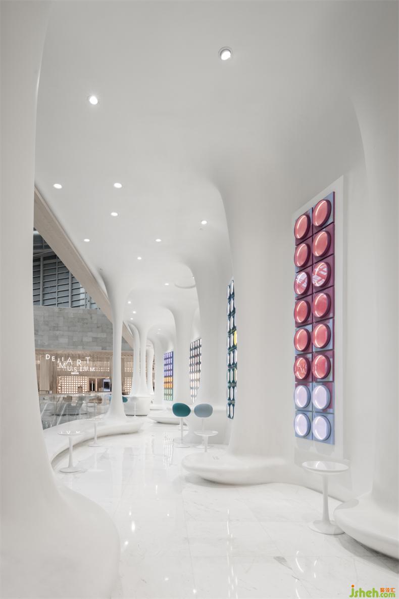 日新月異的商業(yè)創(chuàng)新潮流中,德基集團(tuán)持續(xù)在革新的路徑上,探索著優(yōu)化迭代的方式。項(xiàng)目合作原意為商場(chǎng)公區(qū)的再利用打造,在彼此價(jià)值觀高度契合的基礎(chǔ)上,設(shè)計(jì)師再度探索了商業(yè)與藝術(shù)的邊界,將零售空間打造為一片游走于公共性、藝術(shù)性與商業(yè)性的模糊地帶。它既是線下新零售空間,是公共休閑開放性場(chǎng)所,同時(shí),也是日??臻g中的藝術(shù)切面。