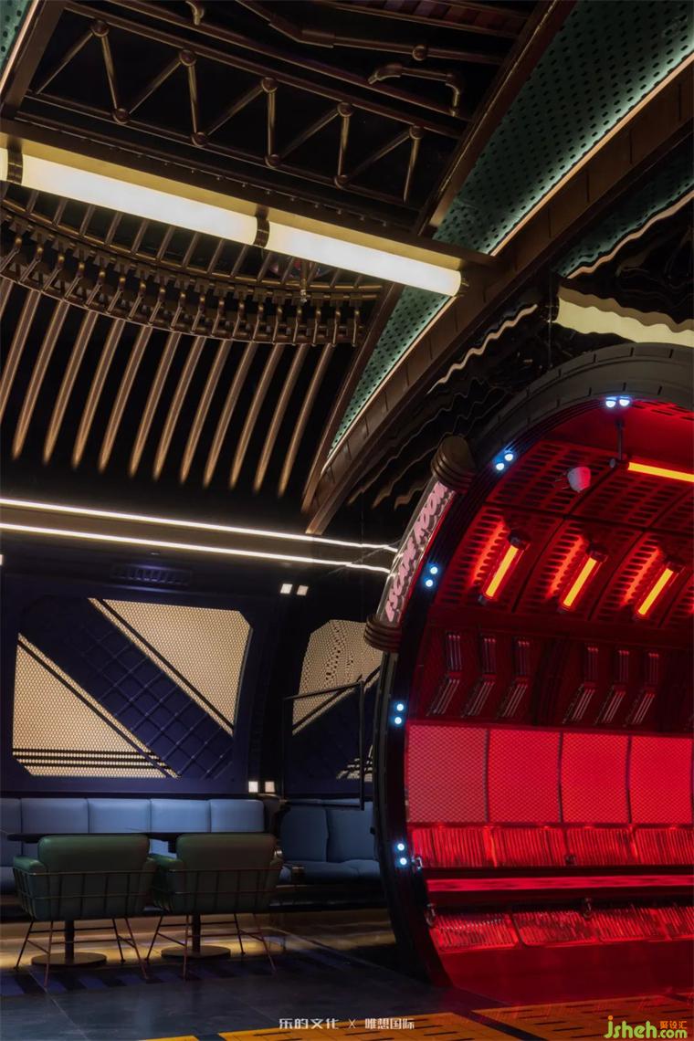 獨特差異性氛圍為項目渲染上裝修設(shè)計神秘的都市傳說色彩:“只在特定時分限定開放的魔幻潮流基地,吸引著城市探索者和娛樂冒險家們集結(jié)在此”。