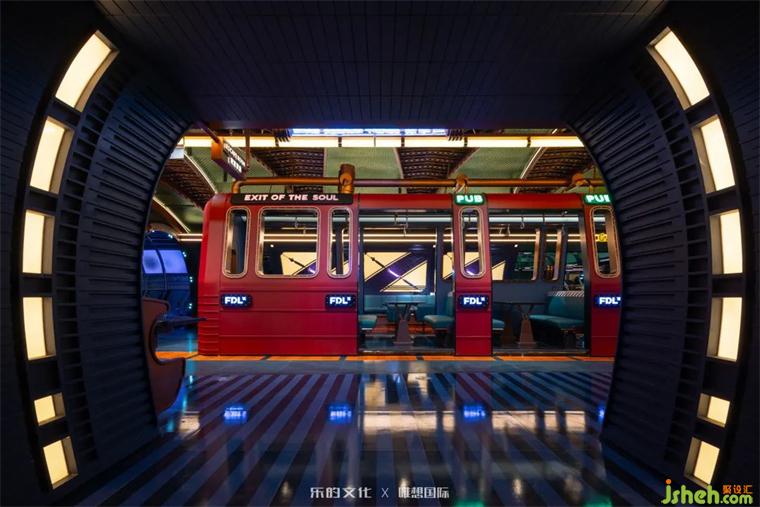 盜夢(mèng)列車??恐帲暯又巴@場(chǎng)玩樂大冒險(xiǎn)下一站點(diǎn)的神秘通道,炫彩燈箱裝飾的金屬管道四通八達(dá)地串聯(lián)起了其他娛樂區(qū),帶領(lǐng)玩家們瞬移至畫風(fēng)各異的平行時(shí)空。差異性極強(qiáng)的空間格局與風(fēng)格化色調(diào)大大豐富了整體項(xiàng)目的體驗(yàn),裝修設(shè)計(jì)的亮眼一筆也再次激發(fā)消費(fèi)者的探索欲。
