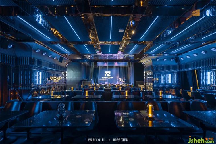 Livehouse以金屬墻面柵格提升空間的復(fù)古感與精致度,裝修設(shè)計(jì)暗紅色沙發(fā)卡座和大理石紋吧桌為空間增添品質(zhì)感,卡座圍放在舞臺(tái)兩側(cè),冷藍(lán)色燈帶點(diǎn)綴般勾勒出空間骨架,渲染幾分先鋒迷幻,裝修設(shè)計(jì)整體營(yíng)造了沉浸式觀賞的演出氛圍。