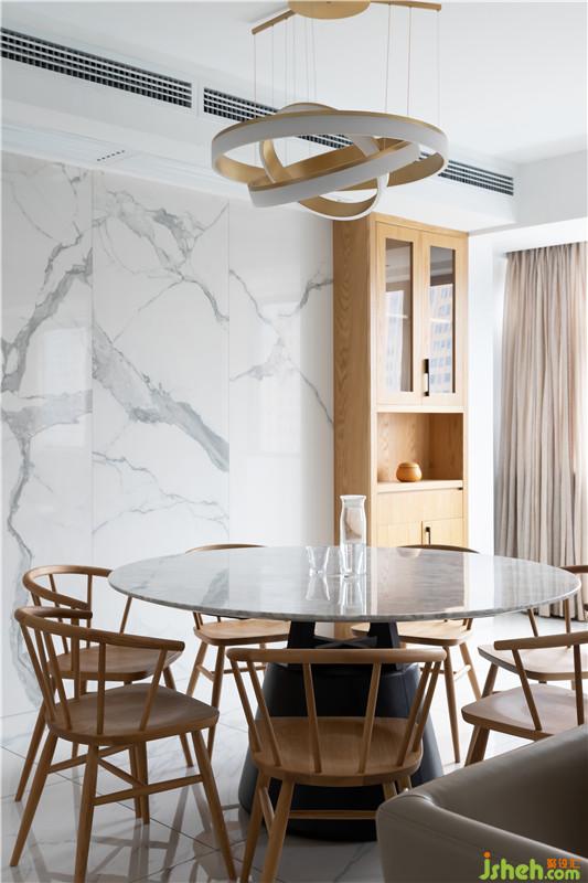 原本客廳上方是挑空的,設(shè)計(jì)后將挑空處進(jìn)行樓板搭建改造,另外將所有陽(yáng)臺(tái)都納入到房子里來(lái)讓室內(nèi)空間變得更大。無(wú)背景的電視背景墻以及客餐廳一體的室內(nèi)空間使整個(gè)房子通透明亮。