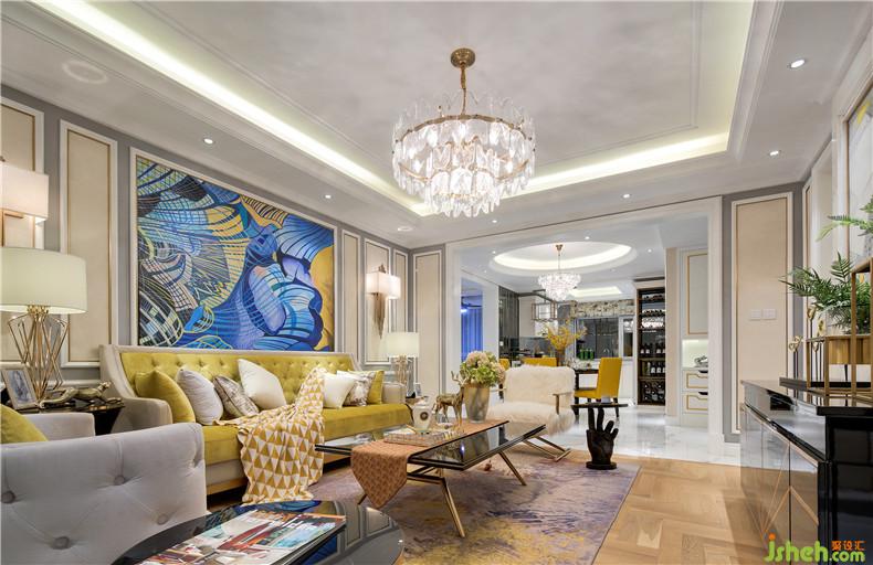 淺色系帶來明媚輕快的空間氛圍,黃與藍碰撞對比,客餐廳錯落有致的陳設細節(jié),富有創(chuàng)造力的藝術(shù)飾品貫穿其中,華美水晶燈投射的旖旎光影,帶來視覺虛實的想象,將精致細膩的質(zhì)感表現(xiàn)延伸至各個空間。