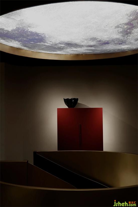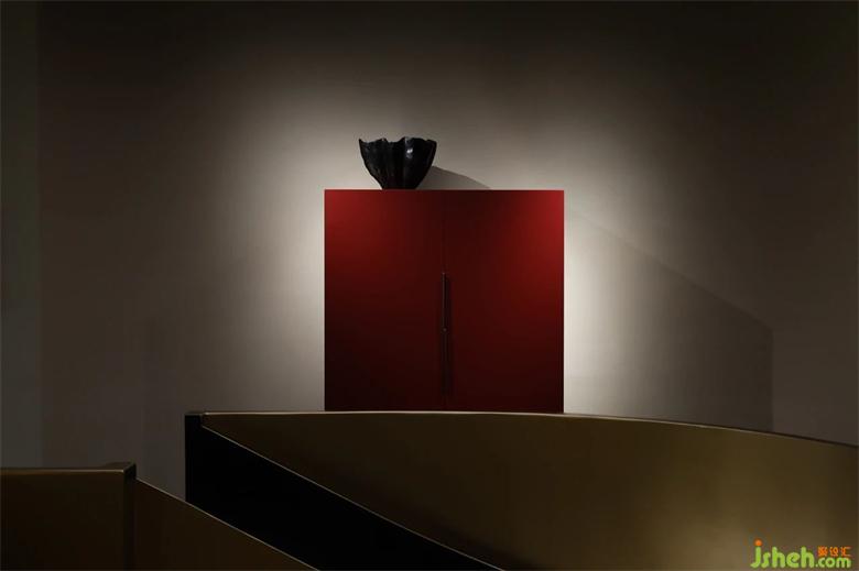 拆除掉局部的樓板過(guò)后,在空間置入一個(gè)圓形的旋轉(zhuǎn)樓梯在室內(nèi)連接樓上樓下兩個(gè)空間。家具展廳設(shè)計(jì)通過(guò)旋轉(zhuǎn)樓梯上到二樓空間,進(jìn)入到一個(gè)充滿靜謐、神秘的空間。產(chǎn)品凸顯了一股神秘的東方氣韻,正紅色的斗柜為空間增添了一筆濃厚的色彩。產(chǎn)品本身浸透在空間的專屬氣質(zhì),挖掘品牌本身的產(chǎn)品精神,塑造獨(dú)有的品牌屬性。展廳設(shè)計(jì)