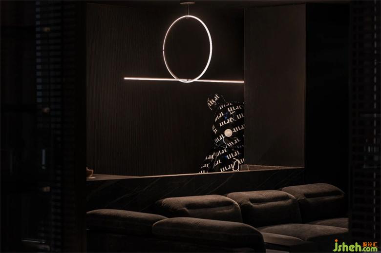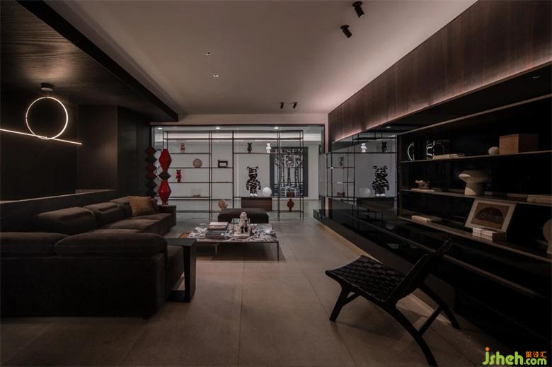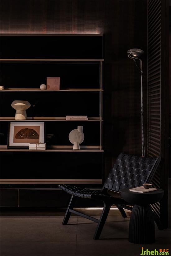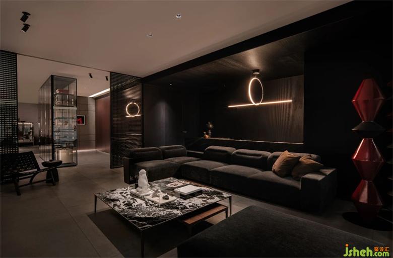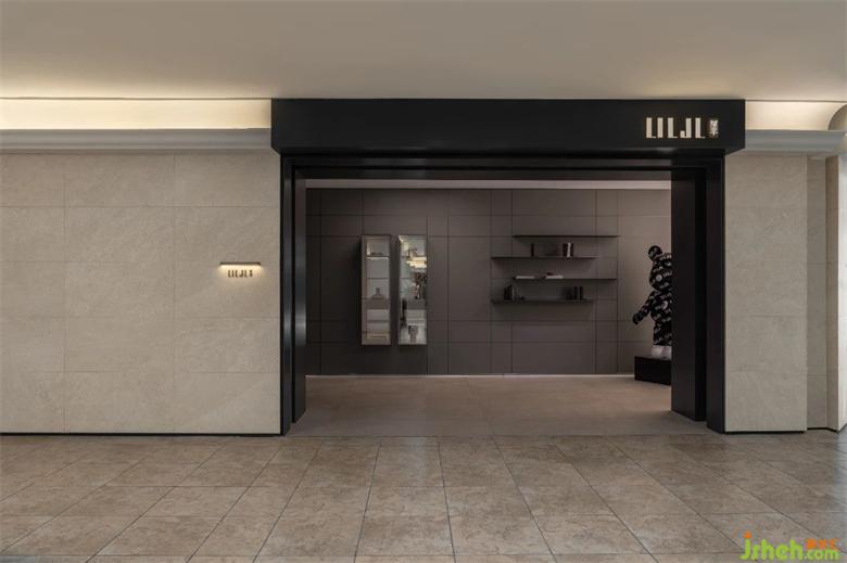 整個展廳歸納為6個空間。以簡潔直白的線條,空靈的的布局,傳達(dá)品牌理念、展示產(chǎn)品工藝。前廳為一個全開敞空間, 是展廳的入口和品牌展示界面。門展示區(qū)是進(jìn)入展廳的第一個展示空間,對景墻左側(cè),是陣列成一排的厘羋門,風(fēng)格色彩統(tǒng)一,潤舍納圖構(gòu)成了空間的序列感。與之連通的是衣柜展示區(qū),半透明的玻璃柜體,形成了空間朦朧的界線,自然的將人流引導(dǎo)到下一個空間??蛷d,兼具產(chǎn)品展示和接待功能,厘羋低調(diào)的LOGO墻前,是水吧區(qū),增加了空間的生活氛圍感,寬敞的意式沙發(fā),質(zhì)感的單椅,營造出舒適卻不失精致的家居體驗。衣帽間對稱的布局方式,讓更衣這件事,變得更有儀式感。與之相對的是辦公區(qū)和選材間,用一扇半透材質(zhì)的推拉門作為隔斷,在工作的同時,可以留意到店的客人。