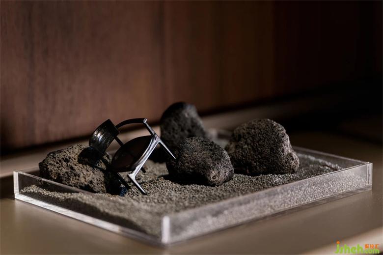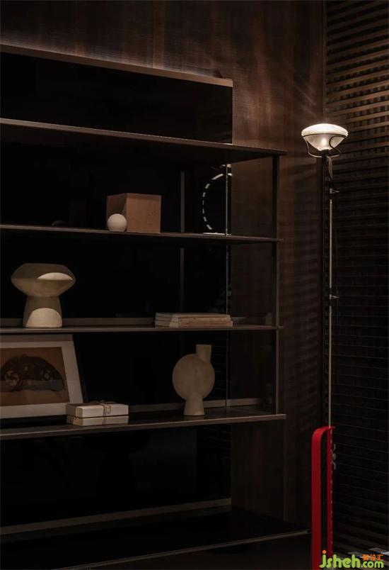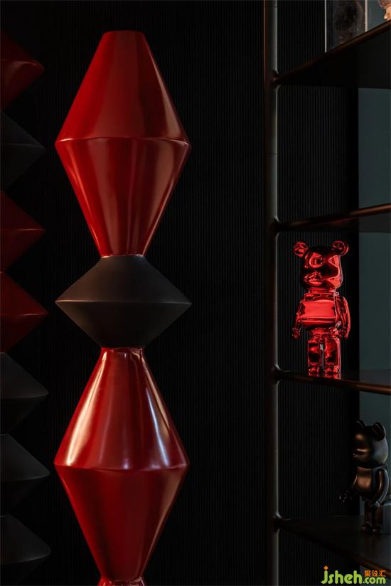 「 醉貌如霜葉,雖紅不是春 」自古文人墨客對(duì)紅色尤為偏愛。在物理聲學(xué)和光學(xué)的類比中,紅色往往代表著低頻長(zhǎng)波聲音,其衍射能力最強(qiáng),容易穿越障礙物,潤(rùn)舍納圖通過視覺沖擊形成強(qiáng)烈記憶。在寂靜的黑白灰之間,添一抹紅,激發(fā)空間的激情。