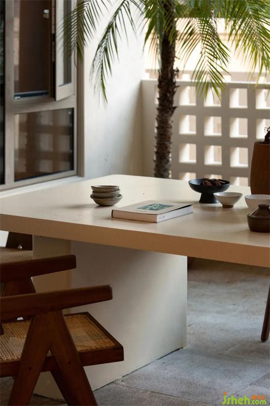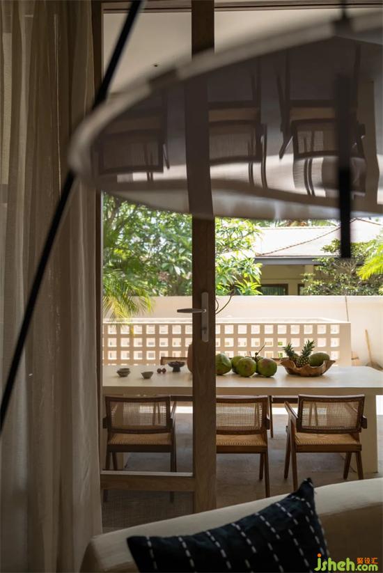 下午四點(diǎn),初夏的光線褪去了一層強(qiáng)烈,早間在集市買回的當(dāng)?shù)厮褦[放在長(zhǎng)桌上,棕櫚樹的枝葉恰遮擋住漸低的太陽。飲茶 、閑談,別墅設(shè)計(jì)開放活躍的院落一同被熱帶氛圍環(huán)繞著,續(xù)談彼此的故事。