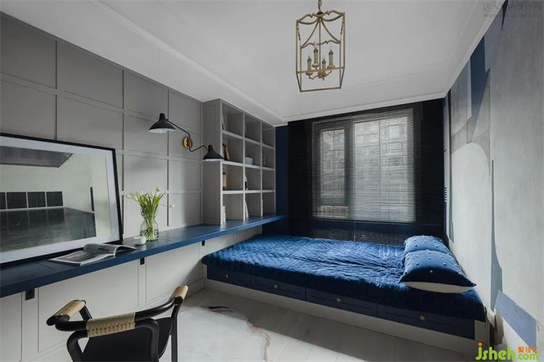 作為書房,我們大膽的讓其擁有客房的功能,家裝設(shè)計(jì)在滿足平時(shí)的閱讀與工作的前提下還能當(dāng)做訪客的臨時(shí)居所,使其功能最大化。
