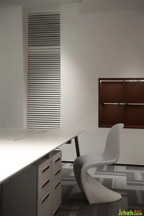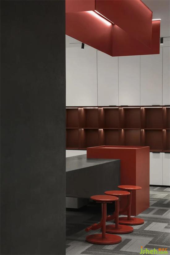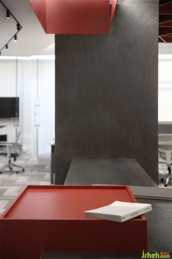 辦公區(qū)域,由自由切面包裹所形成的內(nèi)部空間,空間自由通透同時又機具張力,辦公設(shè)計讓原本呆板的轉(zhuǎn)角空間,得以很好的視覺延展。簡潔開放的辦公區(qū)域,頂上多邊形構(gòu)架,以及墻面收納柜體,整體而統(tǒng)一很好的呼應(yīng)空間主體的設(shè)計語言。