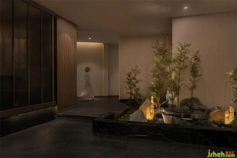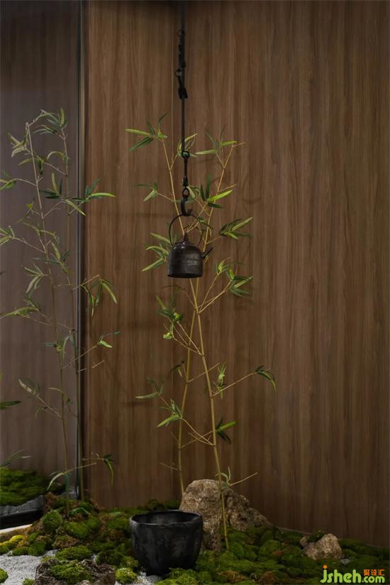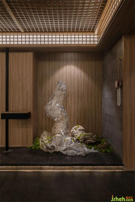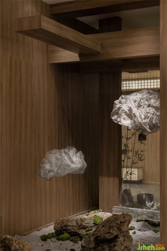 茶道卡座底下怪石嶙峋,竹葉茂密,共同組合成了周邊的山林景觀。茶樓設(shè)計(jì)淺薄真實(shí)山石擬山之高低起伏,山形各異的姿態(tài),從側(cè)邊進(jìn)入到其中,近可觀其中的奧秘,遠(yuǎn)可看世間燈火闌珊。