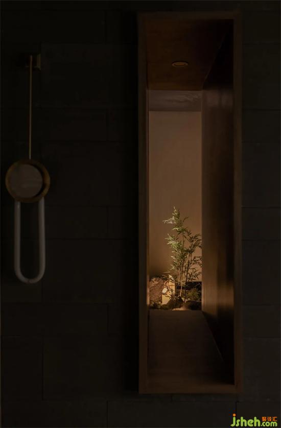 卡座和茶道空間底部及邊緣,模仿山石溝壑的形態(tài),仿佛能聽到石縫間泉水叮咚。茶樓設(shè)計(jì)山石溝壑外透出朦朧的“喧囂“之景,是錯(cuò)離,是夢(mèng)幻。煙霧繚繞,一個(gè)不經(jīng)意,引”仙“入內(nèi),自然別有洞天。