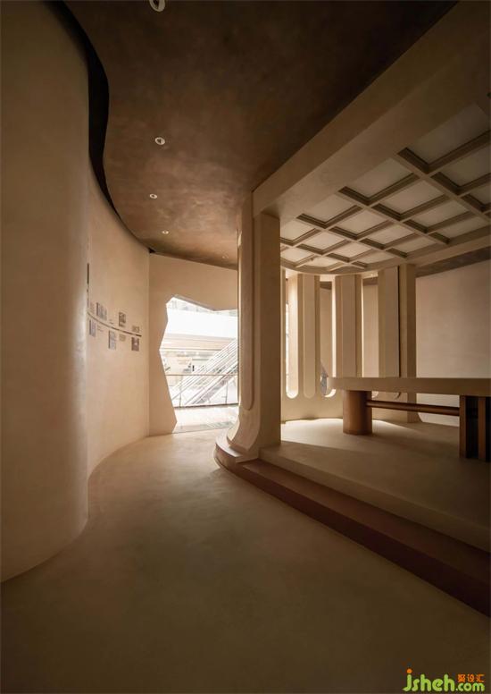 項(xiàng)目位于同類產(chǎn)品高密度排布的建材購物中心之中,而如何讓實(shí)用面積僅有120㎡且吊頂不可高于3.1m的空間承載尤勒貝特的品牌故事、材料展示及銷售功能,并在眾多展廳之間成為獨(dú)一無二的存在,是設(shè)計(jì)團(tuán)隊(duì)的重要挑戰(zhàn)。展廳設(shè)計(jì)我們通過了解尤勒貝特品牌的的歷史淵源、材料特性、工藝手法,提取出三個(gè)品牌核心關(guān)鍵詞“自然、歷史、變革”,區(qū)別于其他以展示材料板為主的展廳,以敘事的體驗(yàn)方式來呈現(xiàn)展示空間與客戶體驗(yàn)。