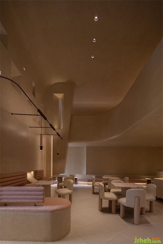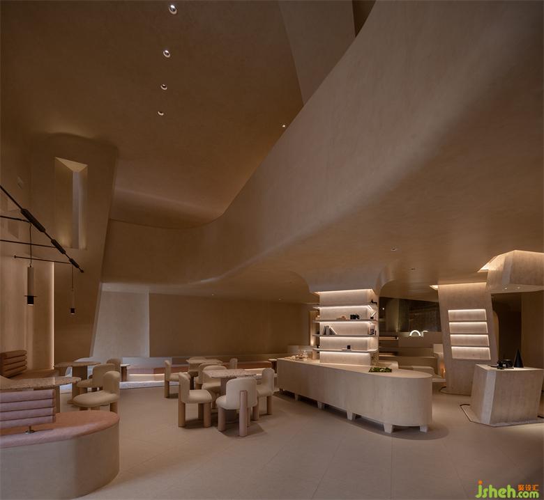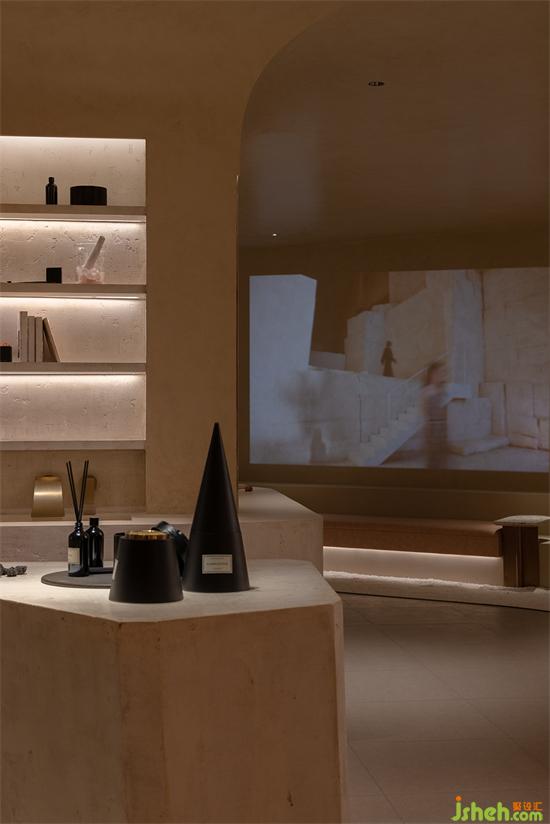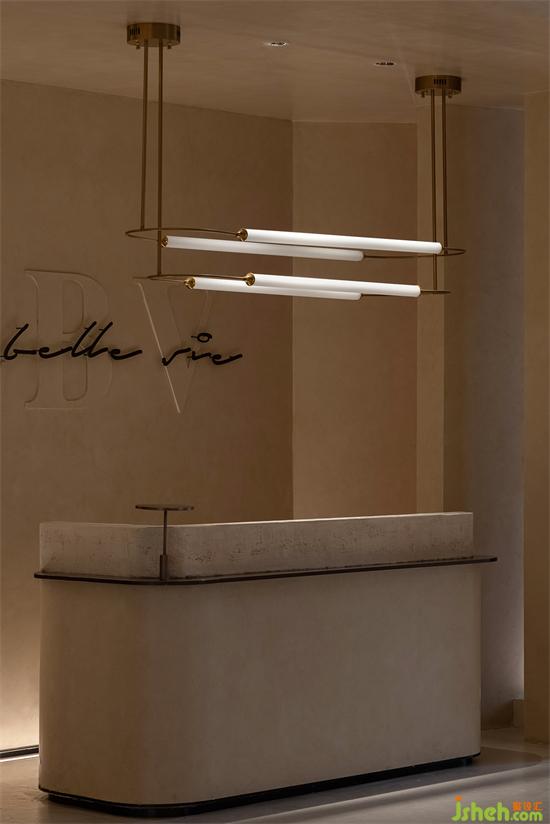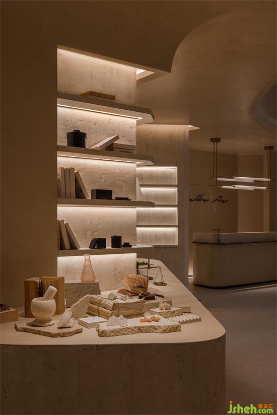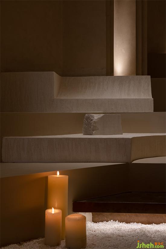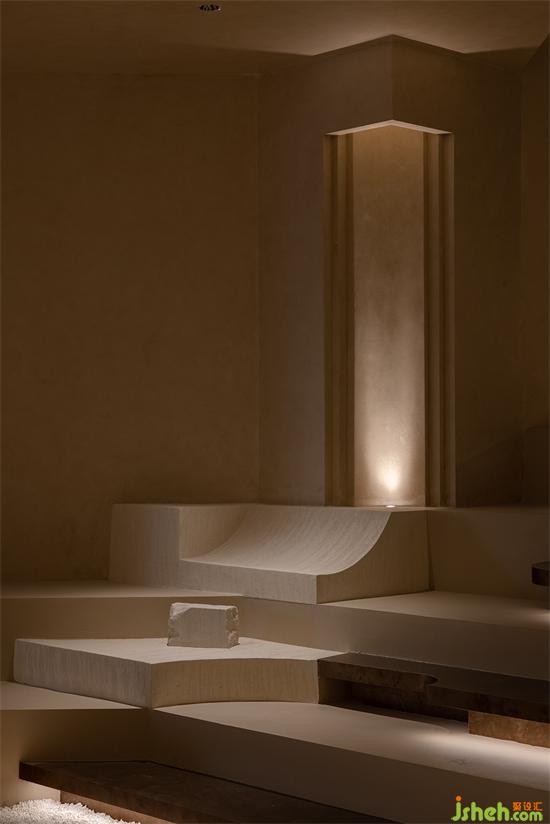 空間中的弧線,切掉了棱角,構(gòu)建出自然意味的建筑感。也收斂起精明與尖銳,似乎一旦進入,不管對美好生活有多少不被理解的執(zhí)念,都將被溫潤又莊重的接納或是尊重。會所設(shè)計看似簡單的線面與幾何體塊的組合中,有著太多的場面,被工匠們一筆筆刷出來的“原生感石柱”,幾可亂真的效果,采用了仿洞石涂料,調(diào)和自意大利進口的原石粉末。