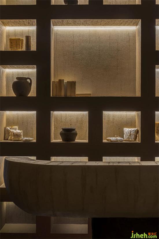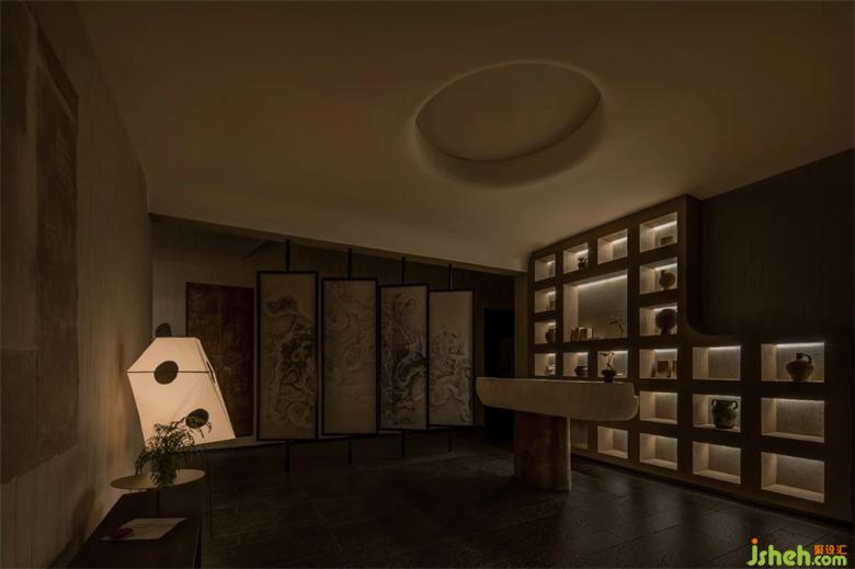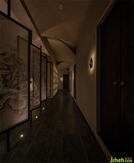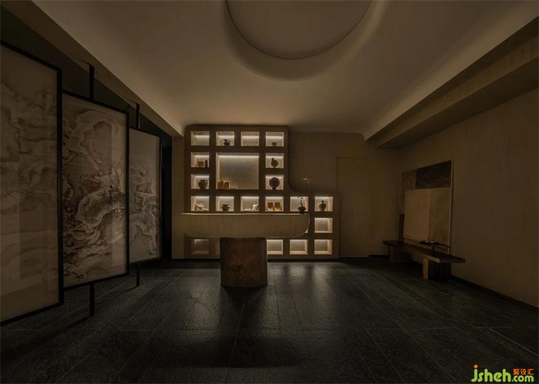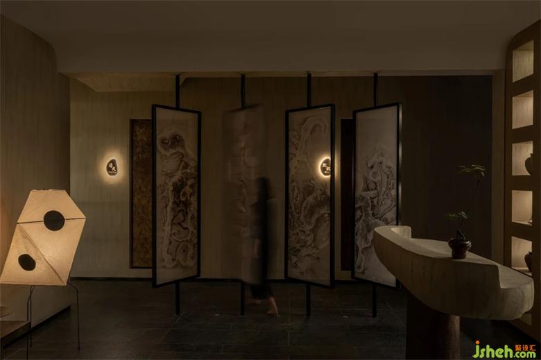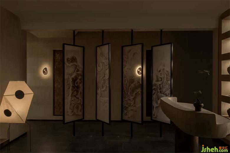 陰為“體”,陽為“?”;陰為有形之“體”,陽為?形之“?” 整體空間注?元?。將整體有形之“體”相互作?。會(huì)所設(shè)計(jì)?廳接待區(qū)不僅作為客?來訪過渡第?空間,更是整體空間集中轉(zhuǎn)換功能的區(qū)域。到達(dá)接待區(qū),客?通過活動(dòng)屏?的指引,可分別被店員帶?不同的理療室。