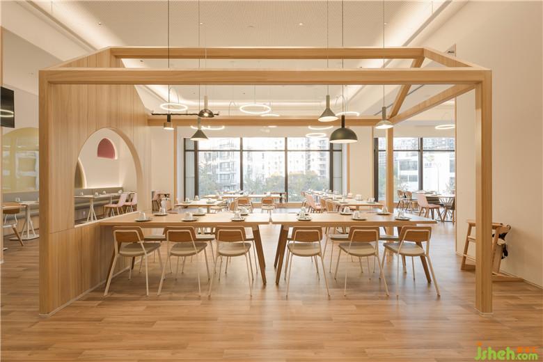 古魯奇所設(shè)計(jì)的維塔蘭德親子餐廳,并不走當(dāng)下流行的夸張?jiān)O(shè)計(jì)的網(wǎng)紅路線,清新如天堂的風(fēng)格考慮更多的是小朋友的使用,而不是為了讓父母拍照。在空間上設(shè)計(jì)師將目光投放在了孩子本身對(duì)高高低低的可以攀爬的空間比對(duì)五顏六色的地方更感興趣的天性上,將空間生動(dòng)有趣高低錯(cuò)落起來(lái),試圖營(yíng)造出能讓孩子們自?shī)首詷?lè)“野蠻生長(zhǎng)”的空間,也好讓父母?jìng)兺档酶∩肴臻e。
