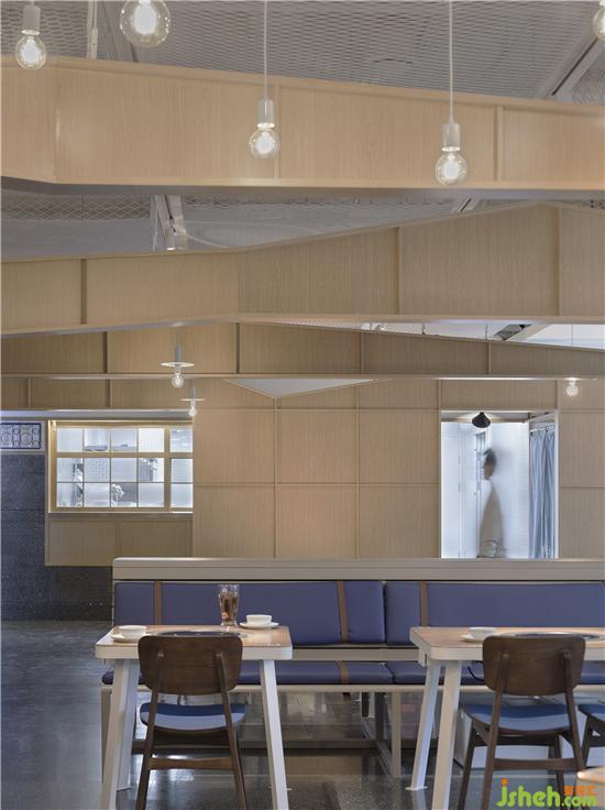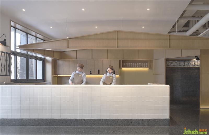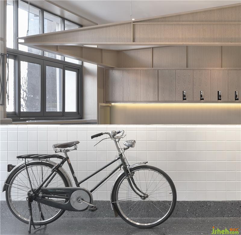 走進店內(nèi),目光所及充滿了舊火車站的氣息,一臺28老式自行車側(cè)立在門口。隔著各式紋樣的花玻璃,看到人影閃爍,以及半遮面的一個大大的時鐘。轉(zhuǎn)身向里走,是兩個郵筒。在臺灣郵筒是成對出現(xiàn)的,有一對郵筒還因為被大風(fēng)吹彎,模樣意外可愛成為臺北最熱門景點之一。郵筒后就是暖暖茶歇了,干凈的小白磚臺面,轉(zhuǎn)角處的弧形小白磚,隱約透露著純樸與精致。黑糖珍珠的霧氣裊裊升騰,暖暖的香味彌漫整個茶歇,融合師傅們忙忙碌碌的身影,仿佛排隊進站一樣的熱鬧。餐廳設(shè)計
