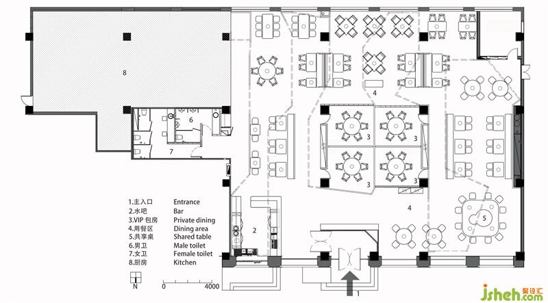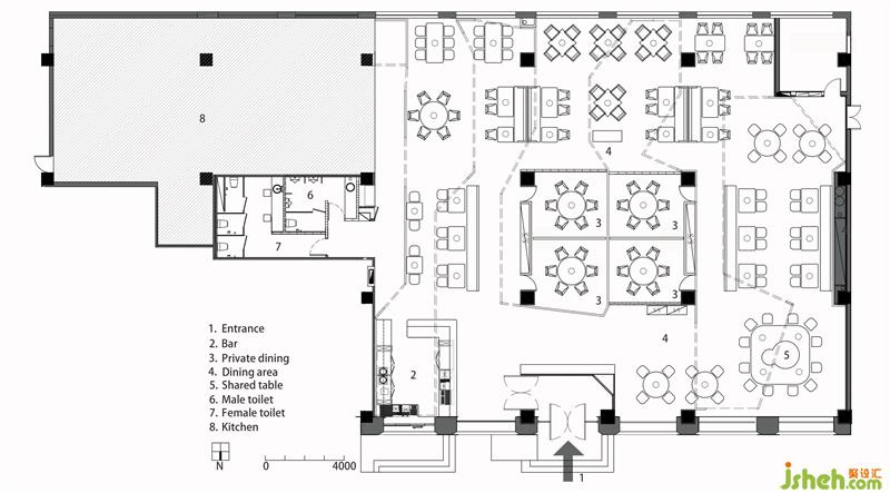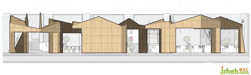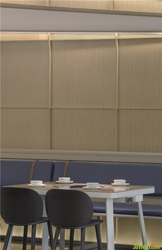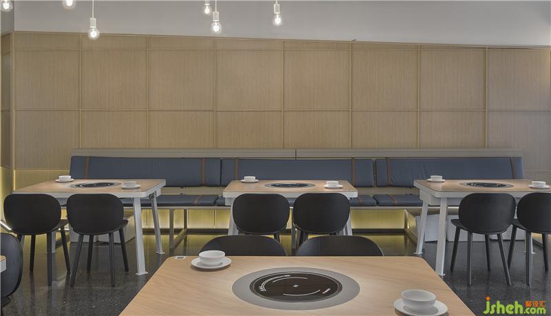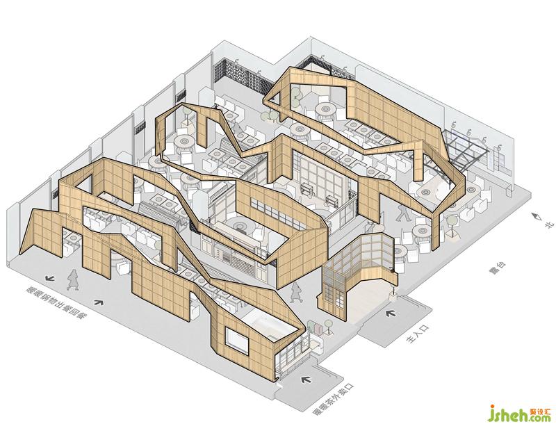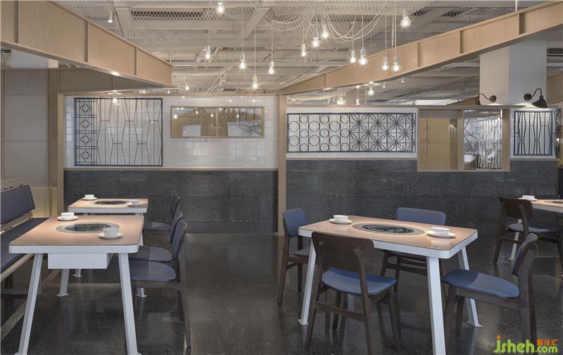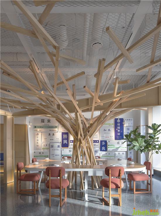 Looking up, the shapes of the gables from the Taiwan Railway Station in the space rise and fall. It is sometimes parallel and sometimes curved, and the cascading gables are like jumping notes. When it lights up, it is a warm song. It strings up the warm sky, sheltering guests from the wind and rain, bringing warmth. The designer wanted to use the language of the gable to bring guests back to the ancient flavor of the old times and feel the customs of Taiwan during that time. Functionally, it also stabilizes the overall space vision and distinguish between spaces. The gable in the central area functions as a partition.餐廳設(shè)計(jì)
