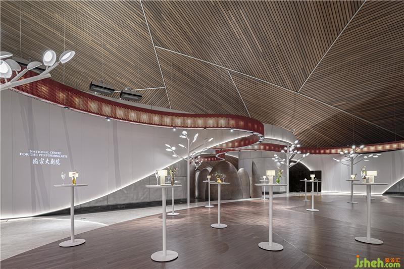 作為中國(guó)最高藝術(shù)殿堂的國(guó)家大劇院,上演著大大小小不同類(lèi)別的演出,古魯奇設(shè)計(jì)團(tuán)隊(duì)創(chuàng)意概念來(lái)自舞蹈藝術(shù)提煉而成的“飄帶”作為給予空間新的視覺(jué)元素。飄帶也有著另一層意義,就像是一縷黃絲帶,讓它以自然的型態(tài)飄落在空間當(dāng)中,紀(jì)念這位偉大的已故建筑師保羅·安德魯。