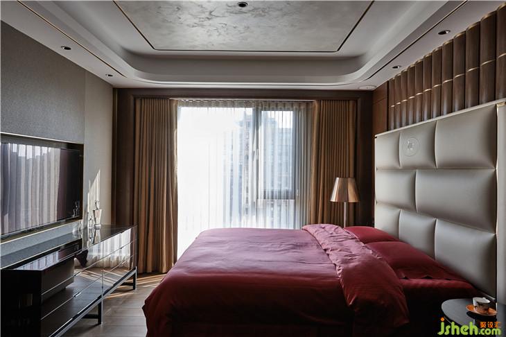 在一樓主臥的設(shè)計(jì)上,根據(jù)居住主人的年齡、性格和喜好,設(shè)計(jì)師將空間打造得沉穩(wěn)寧靜又不失獨(dú)特優(yōu)雅。設(shè)計(jì)師利用材料的多元化應(yīng)用、幾何造型的有機(jī)設(shè)計(jì)融合、線條節(jié)奏和韻律的充分展現(xiàn),燈光造型的立體化應(yīng)用等表現(xiàn)手法,呈現(xiàn)了一個端莊典雅的臥室空間。床頭背景墻是設(shè)計(jì)中的重頭戲,木質(zhì)細(xì)膩,造型錯落有致,端莊大氣,床上用品的一抹玫瑰茜紅,讓優(yōu)雅的臥室空間多了一份溫馨柔和,獨(dú)具浪漫主義情懷。