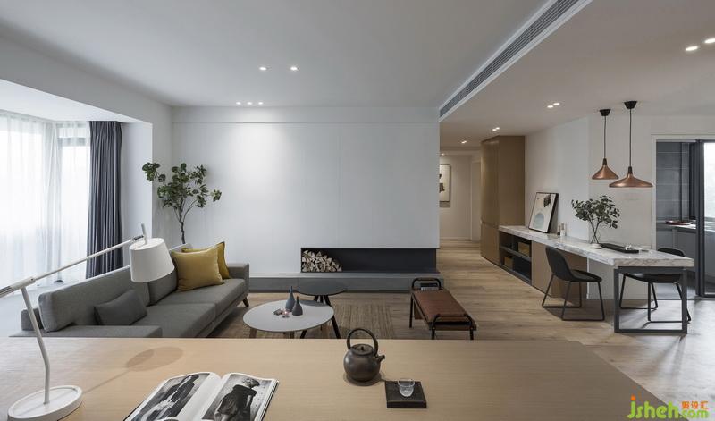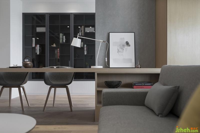 客廳連接開放式書房,空間功能多元且靈動(dòng)。
