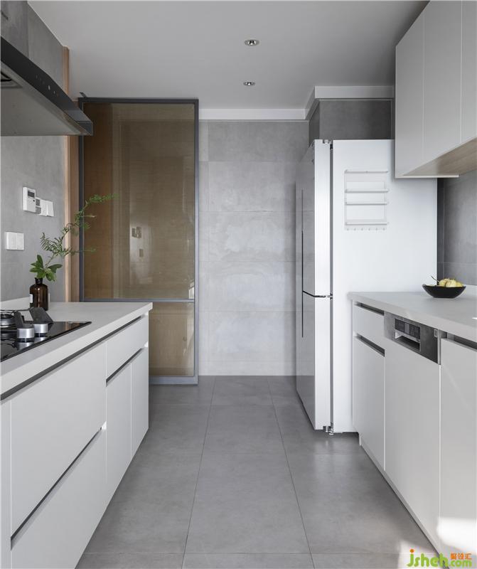 中式廚房的家裝效果設(shè)計運(yùn)用白與灰的基調(diào)色,賦予干凈清爽的空間表情。