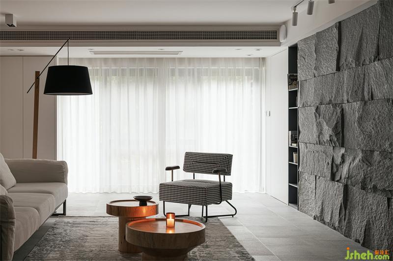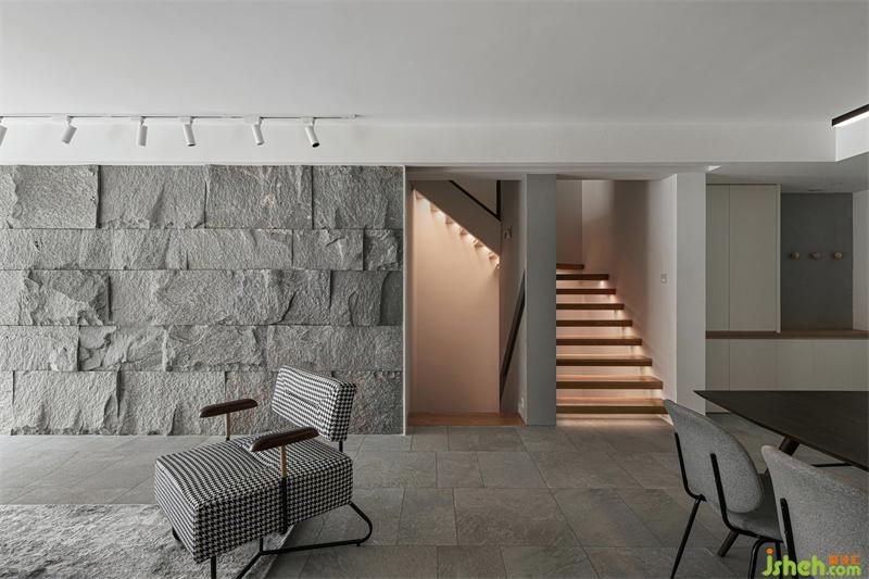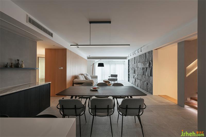 天然的材質(zhì)總是充滿了溫度,如木質(zhì)般溫潤,如磐石般可靠,依靠獨(dú)特的紋理和質(zhì)感,讓空間與自然升溫發(fā)酵,充滿原始質(zhì)樸的能量。不規(guī)則原石墻面,鋪展開親近自然的真實(shí)感官,給予空間張力與生命力,于空間增添投石問水般的律動(dòng);配合大面積落地窗引入的自然光,糅合交織出空間光影的韻律。