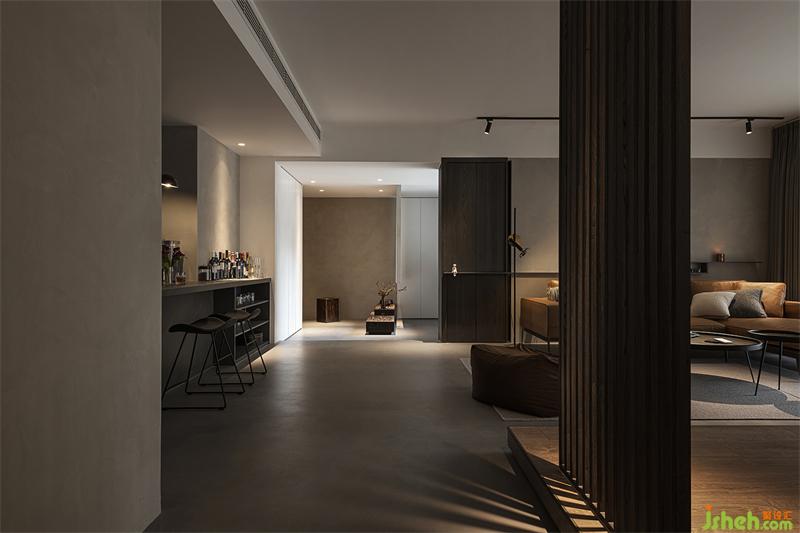 對(duì)本案的業(yè)主來(lái)說(shuō),家是相對(duì)自我的空間。夫妻二人希望在繁忙的工作結(jié)束后,可以獲得長(zhǎng)效舒適的居家體驗(yàn),能夠真正放逐自我:設(shè)計(jì)師摒棄了傳統(tǒng)的布置方式,在當(dāng)代的極簡(jiǎn)造型中,融入些許侘寂元素,構(gòu)建出一個(gè)內(nèi)斂沉靜的居室。