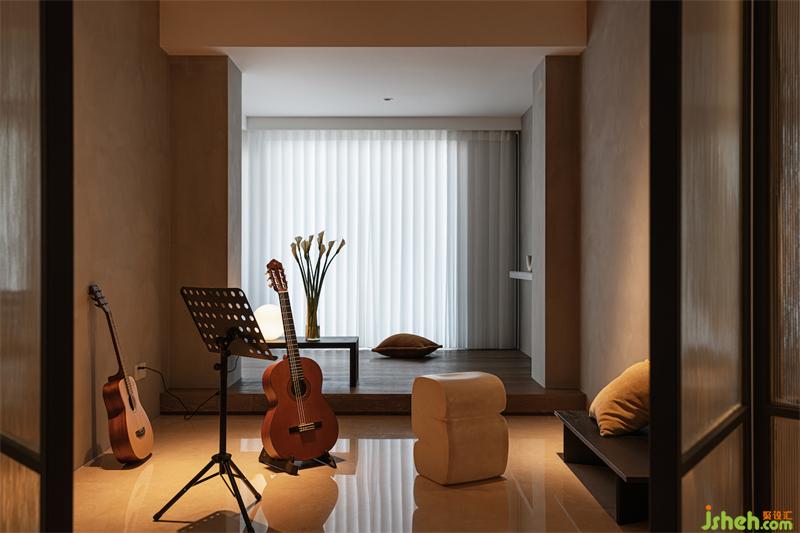 從空間來看,為了給予屋主更安定的居家感受,每處功能區(qū)都以半圍合的形態(tài)呈現(xiàn),既不是完全敞開也不是完全封閉,讓空間相對獨立又和諧統(tǒng)一。璞珥空間設(shè)計充滿文藝氣息的樂器房在不同的使用狀態(tài)下可靜可動,有私密性卻又不封閉沉悶。
