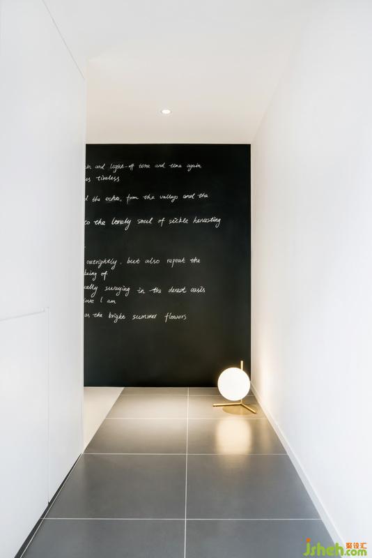 門廳墻面的黑板漆形成留言涂鴉墻,更富有童趣的居家場(chǎng)景。地面的球形燈仿佛在歡迎你的回家,強(qiáng)調(diào)入戶儀式感。