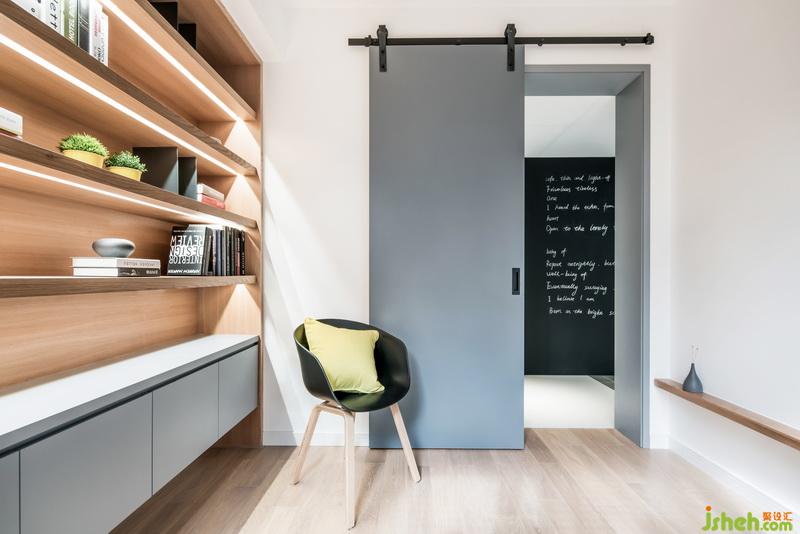 頗具序列感的過道更加提升空間品質(zhì)感,室內(nèi)設(shè)計(jì)師右側(cè)的移動(dòng)暗門是通往廚房的秘密基地。