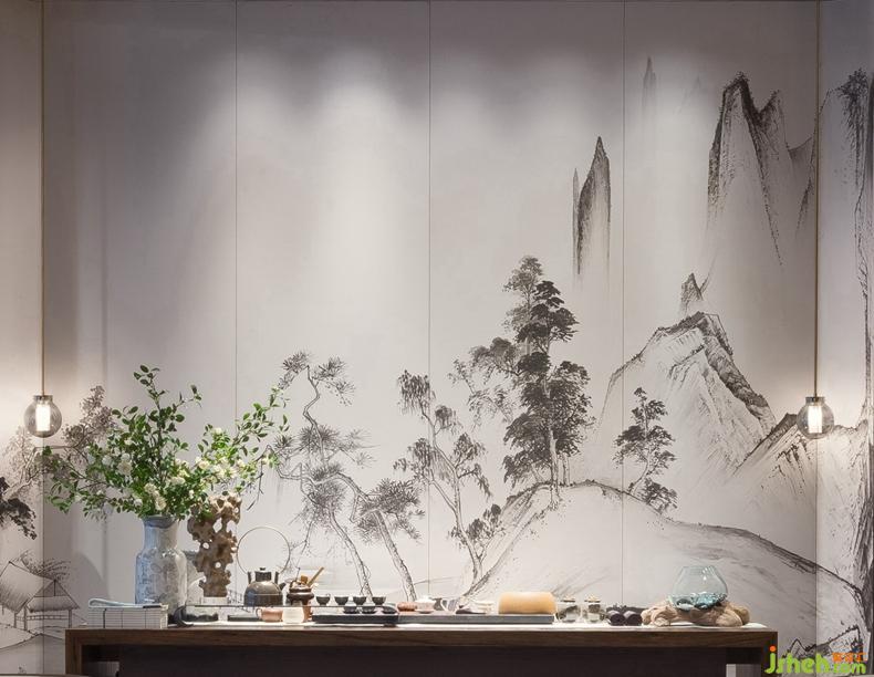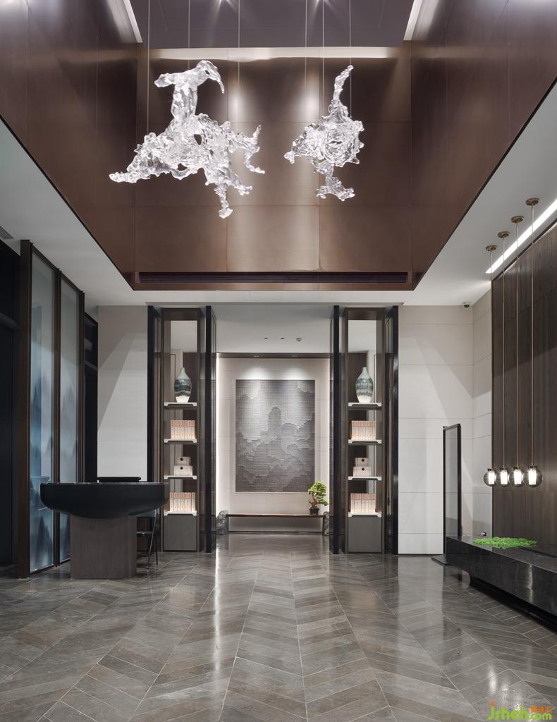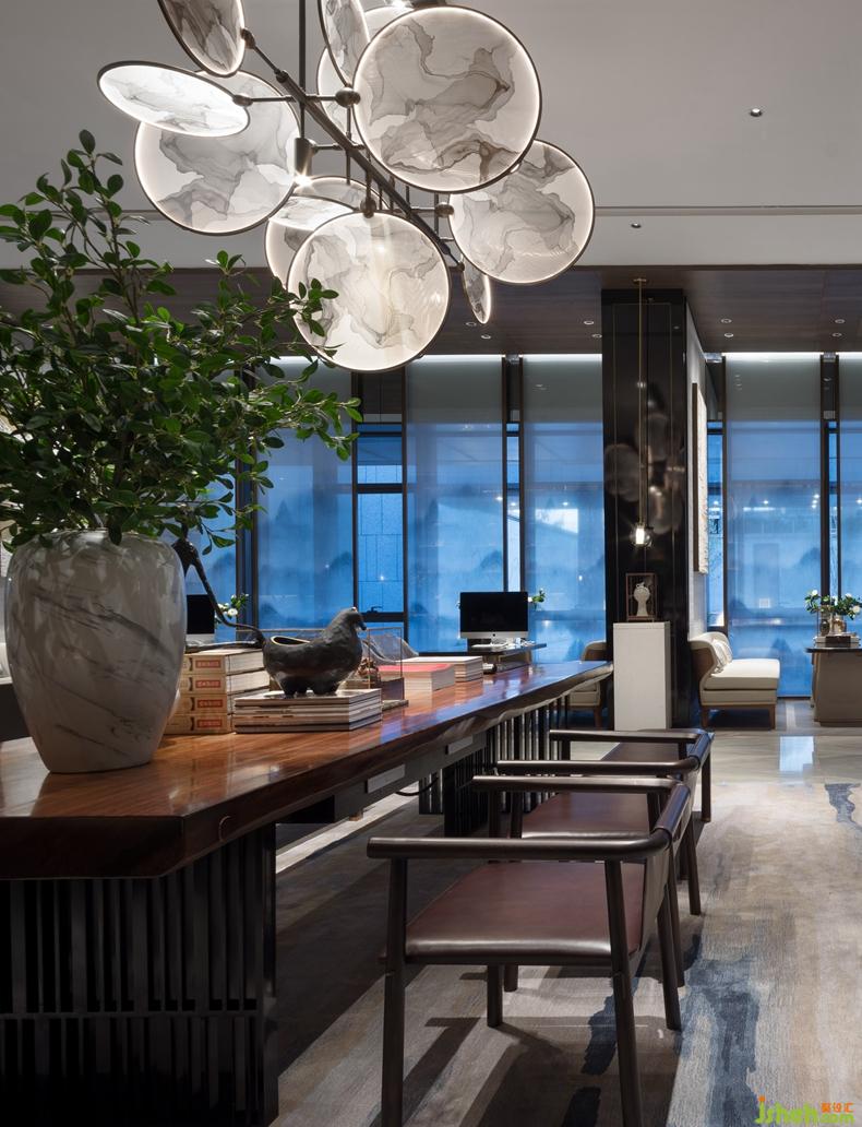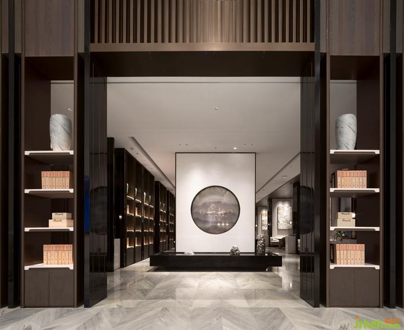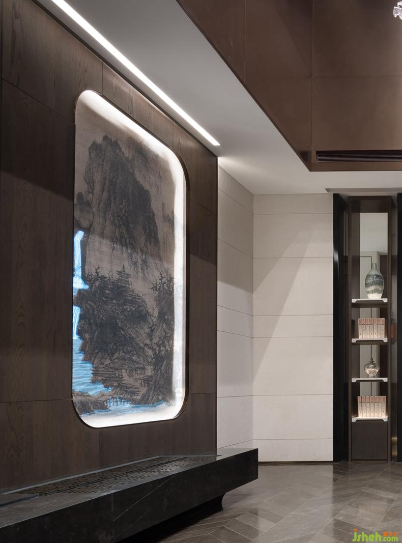 海納府的意寓與門口的《溪山行旅圖》相互呼應(yīng)。深圳設(shè)計(jì)公司畫作之中,山頂叢林茂盛,山谷深處一瀑如線,飛流百丈,展現(xiàn)雄偉磅礴氣勢。海納也廣闊,容下溪山瀑布的磅礴,不足掛齒,巨峰壁立、樹木茂密也抵擋不了海納的浩然之氣。