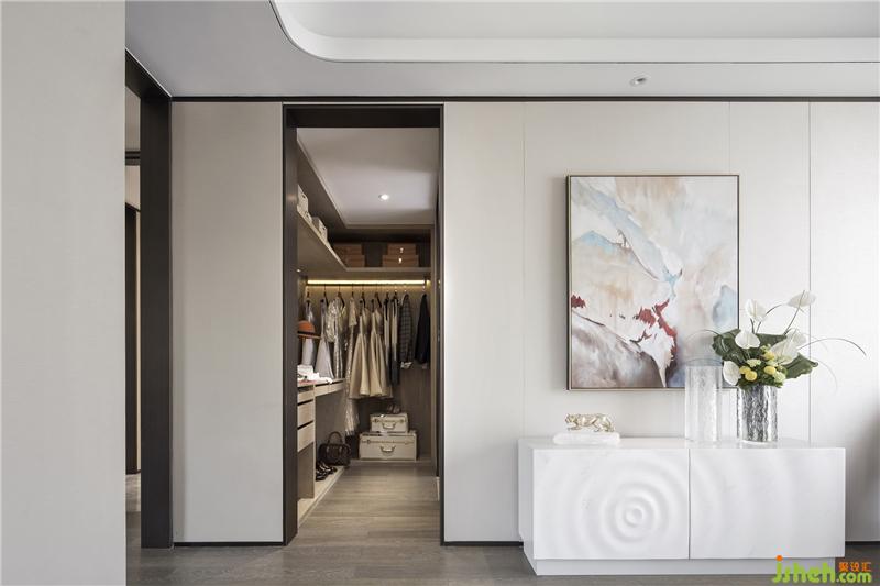 主臥套房內(nèi)設起居室、衣帽間、書房和主衛(wèi),各功能區(qū)呈遞進式布局。在氛圍上,營造時尚而不浮躁,典雅卻不乏浪漫的感覺。