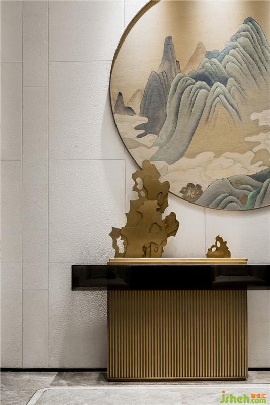 國人崇玉,所謂“玉不琢,不成器?!庇衿鞯闹谱饕?jīng)過刻、碾、琢、磨、鉆等多道工序,就如同我們對待居住空間一樣,經(jīng)過了不斷的否定,推敲到確定。因此該項目的公共空間的設計靈感來自于“玉”,主要從玉的品質(zhì)及器型的處理上入手并進行延伸,為空間提取了玉的弧線及它的溫潤與高貴。