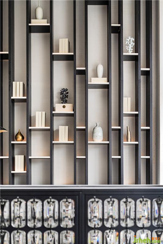 福州脫胎漆器,被譽(yù)為“珍貴黑寶石”和“東方珍品”,設(shè)計(jì)師將福州漆器植入空間中,從門(mén)廊的藝術(shù)裝置到水吧臺(tái)的背景墻,甚至一整面墻體藝術(shù)品展示,皆以福州脫胎漆器為形之主體,用現(xiàn)代設(shè)計(jì)的解構(gòu)方式展示傳統(tǒng)文化藝術(shù)的瑰麗,在空間中產(chǎn)生一種新的對(duì)話。