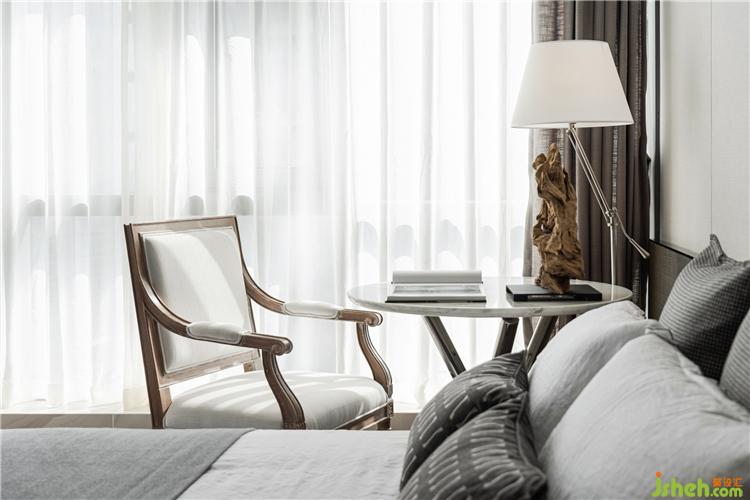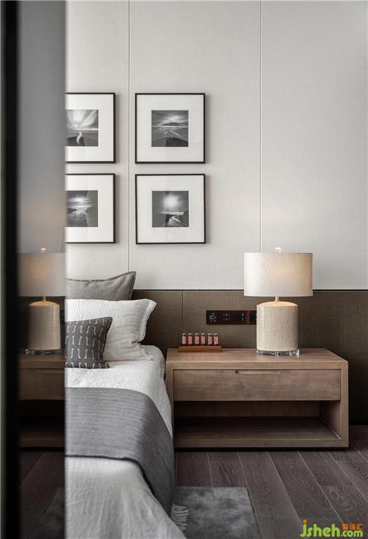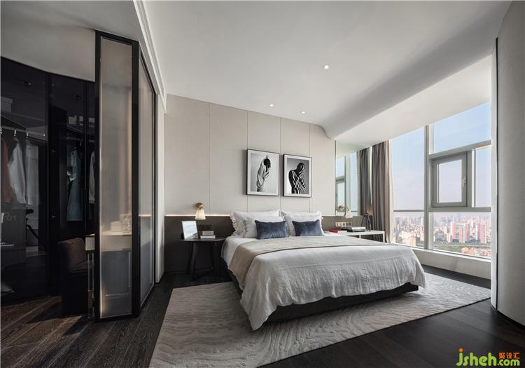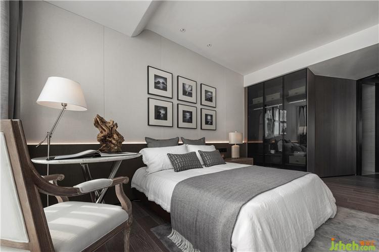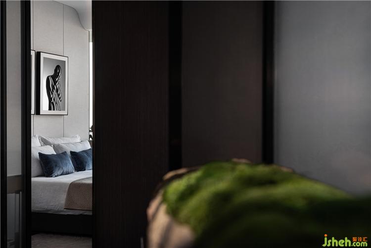 臥室同樣講究配色、材質(zhì)和尺度的把控,纖塵不染的白色天花、濃稠墨黑色調(diào)的衣柜、雅雋灰白調(diào)床品,格調(diào)在黑白灰的濃淡有致間得以統(tǒng)一。