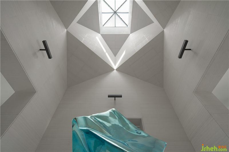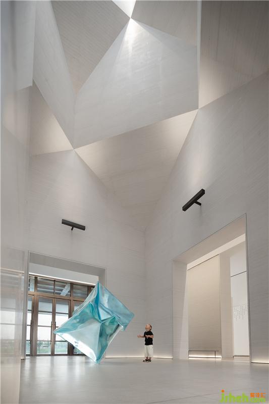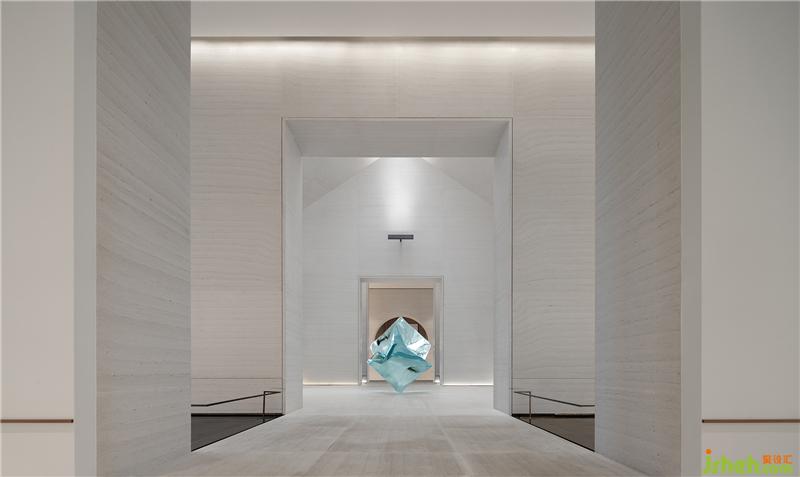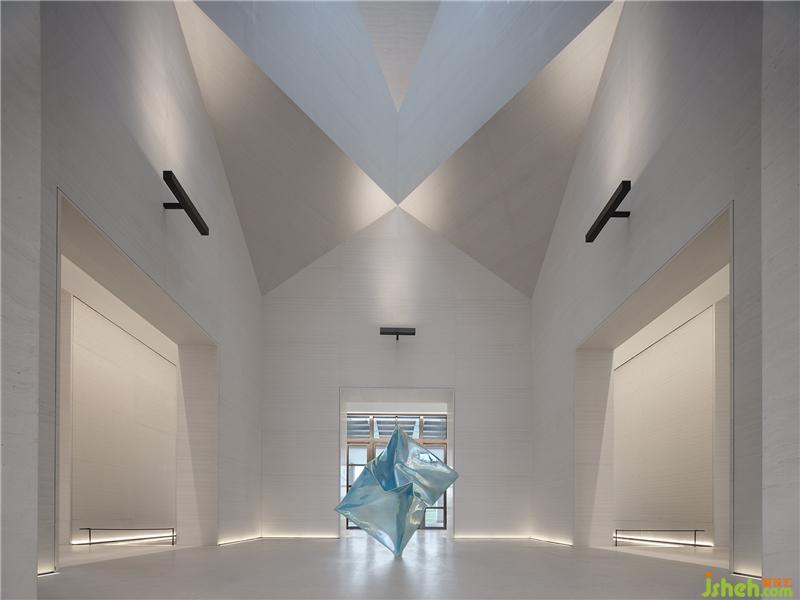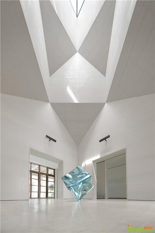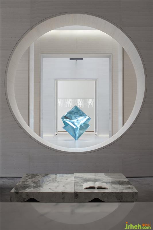 而位于空間正中、凝聚藝術(shù)氣息的藍(lán)色雕塑《檐合》,出自藝術(shù)家張齊努之手,與古建筑屋檐元素形成語言共鳴,一舊一新的文化碰撞,創(chuàng)造豐富的空間審美體驗(yàn)。