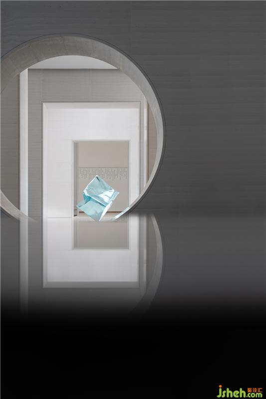 觀訪者隨著空間動(dòng)線,須經(jīng)過一條干凈又充滿體驗(yàn)感的狹長(zhǎng)過道去到更多功能區(qū),設(shè)計(jì)運(yùn)用數(shù)字化技術(shù)在LED屏幕墻上展示與人的互動(dòng)關(guān)聯(lián),隨著人緩緩前行的步伐,墻上泛起一圈圈的“漣漪”,為空間帶來縹緲的夢(mèng)幻感。