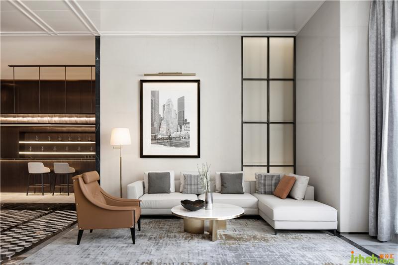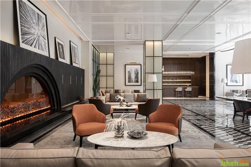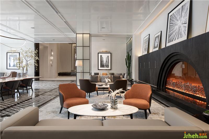 深度洽談區(qū)的一側(cè)是由墨金大理石構(gòu)筑的壁爐墻,黑白的自然或建筑剪影像裝點(diǎn)其上,定格記憶力與想象力;淺米色的布藝軟包與褚棕色單椅的搭配,深淺相宜。設(shè)計將人文氣質(zhì)融入空間,締造領(lǐng)悟藝術(shù)的時間,令觀者的內(nèi)心在片刻中得到沉淀與觸動。