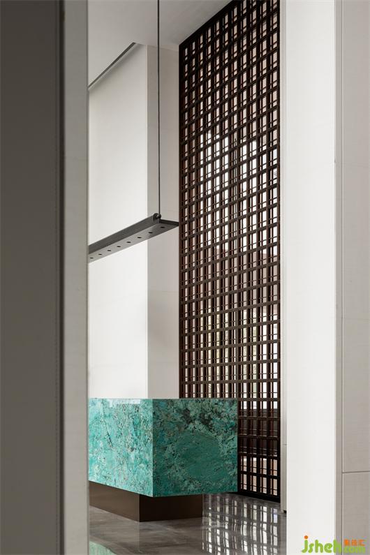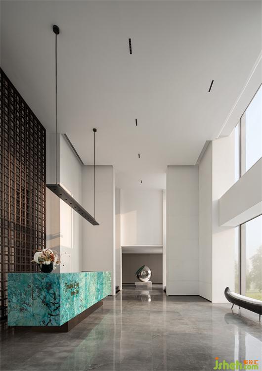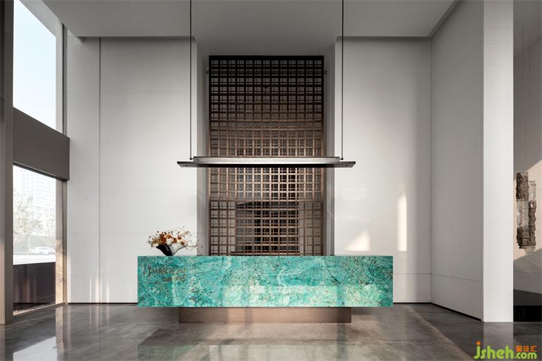 接待廳,我們特意尋覓了孔雀藍(lán)色彩的奢石,精細(xì)打磨圍合出一方細(xì)膩且高雅的接待臺,形成視覺的第一會面空間。