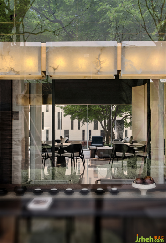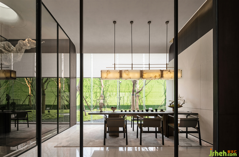 穿過洽談區(qū),來到素雅靜謐的茶室。即便是在有限的空間內(nèi),我們?nèi)韵Mc景為鄰,去創(chuàng)造能體現(xiàn)南京城市人文特色的場所。