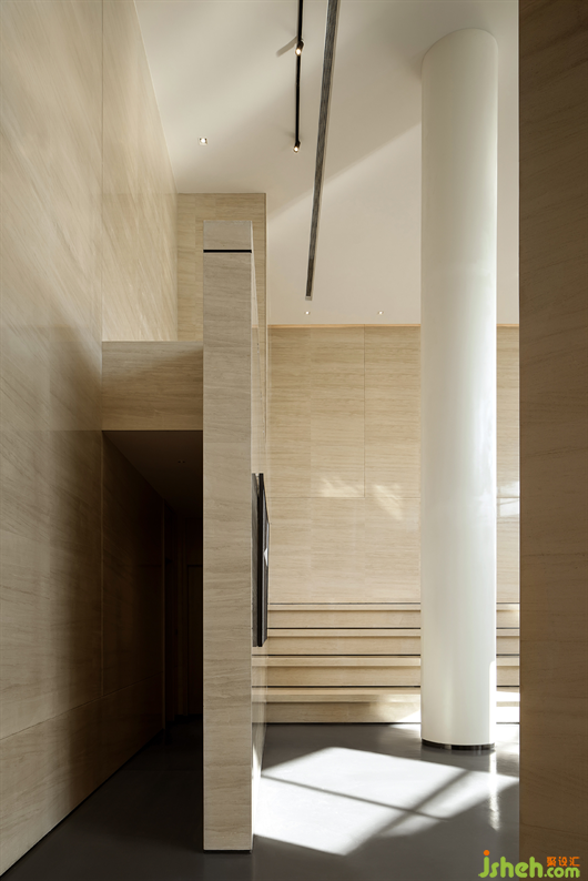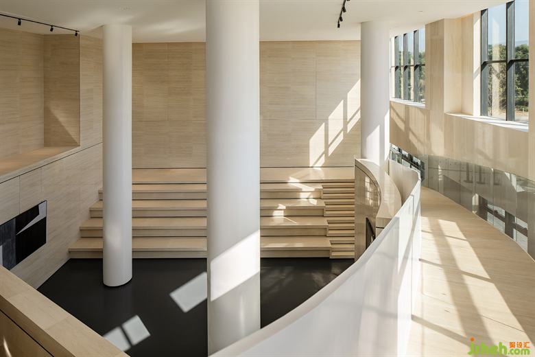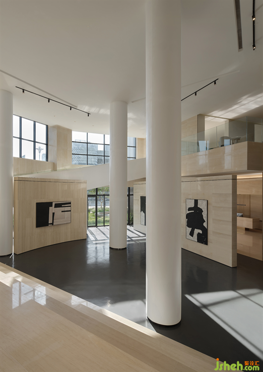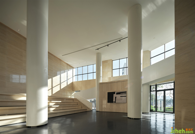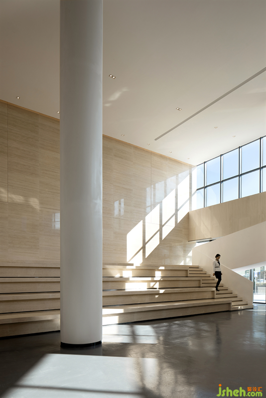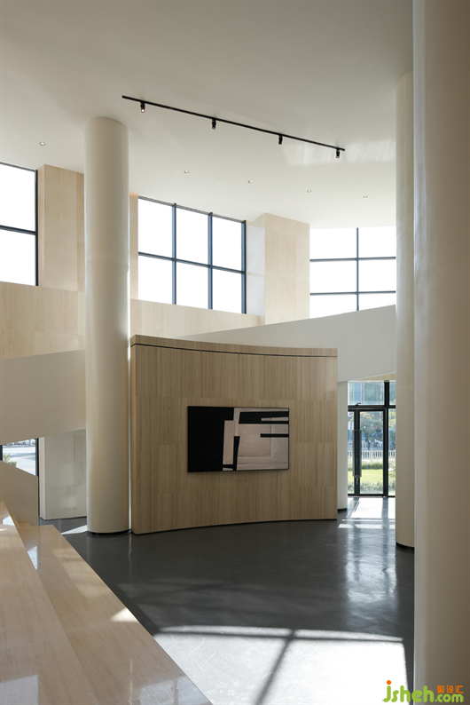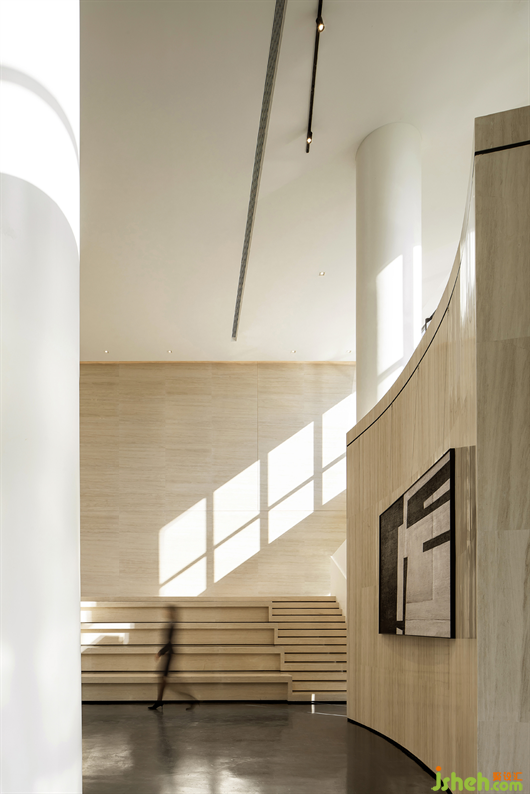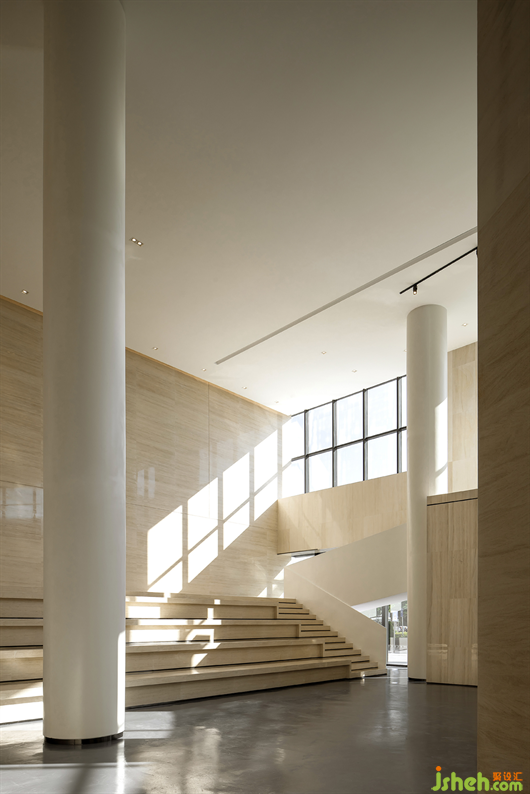 在上午時(shí)分,陽(yáng)光透過(guò)玻璃幕墻,漫入空間,在此駐足停留,在此交織變幻,空間的質(zhì)感得以體現(xiàn)。