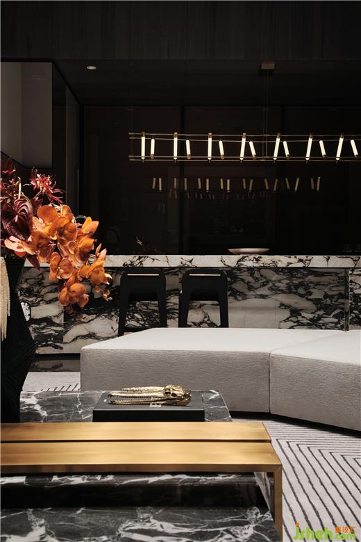 氣氛屬于生活,場(chǎng)景化有助于生活的提升。負(fù)一層作為社交空間,別墅裝飾以構(gòu)建多樣功能和交互場(chǎng)景為核心展開(kāi)設(shè)計(jì)。設(shè)計(jì)師根據(jù)梁的位置,靈活梳理空間的結(jié)構(gòu)骨架,整層兼容了藏酒室、影視廳、私宴廳、會(huì)客廳、水吧等多種場(chǎng)景,實(shí)用性強(qiáng),會(huì)客接待或家庭自用都非常受用。