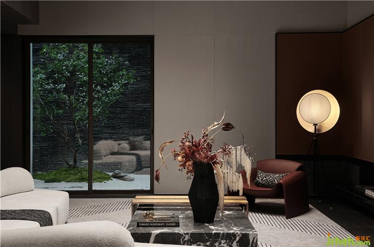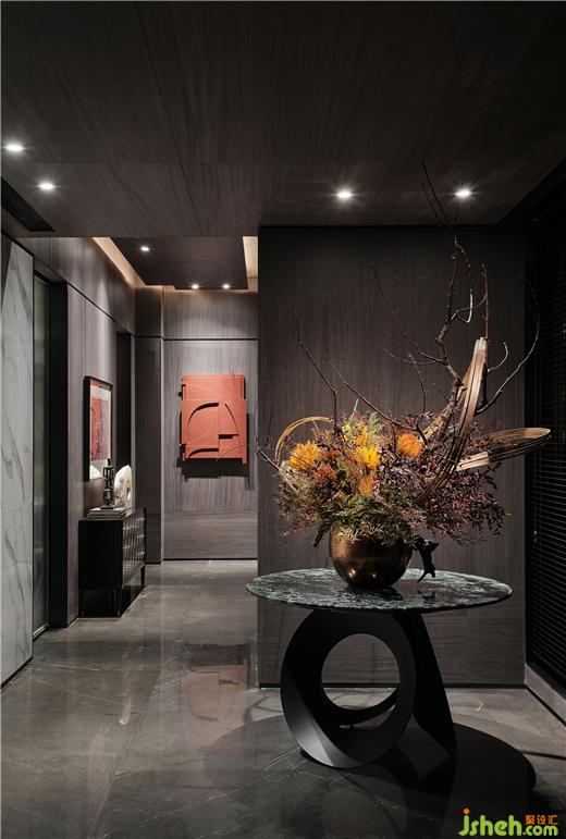 負(fù)一層因?yàn)槿狈ψ匀还饧鞍瞪{(diào)的基底材料使用,整體光感較暗,但有了花藝和綠植的介入改變了一些氛圍和觀感。花藝綠植的魅力,就是用自然的生命力量打破空間的沉寂。別墅裝飾植物本身的姿態(tài)、質(zhì)感、色彩與平直剛硬的空間架構(gòu)和線條形成對(duì)比,改變?nèi)藗儗?duì)空間的影像,產(chǎn)生一種柔和靈動(dòng)的氣息。