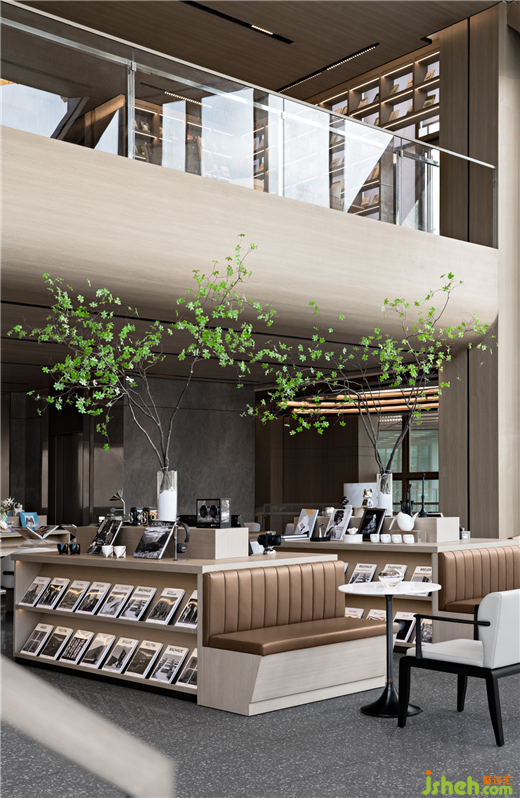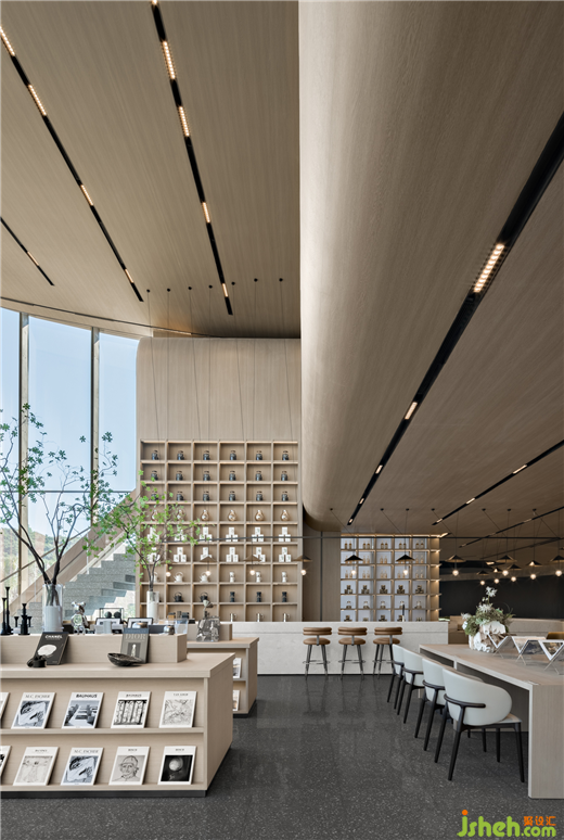 營銷中心設(shè)計(jì)項(xiàng)目室內(nèi)面積近3000㎡,設(shè)計(jì)疊加功能組合,將三個(gè)樓層以品牌展示、商務(wù)、文創(chuàng)、娛樂、休閑等不同主題功能模塊串聯(lián)。除了必要的公共區(qū)域,如接待區(qū)、沙盤區(qū)、展示區(qū)之外,其他空間全部為滿足社區(qū)生活需求而生,涵蓋輕食、咖啡、茶飲、閱讀、手工、花藝、運(yùn)動(dòng)……人于空間中活動(dòng),能感知到豐富多姿的生活狀態(tài)。
