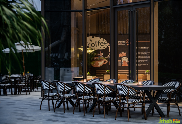 大型的咖啡吧臺(tái),一應(yīng)俱全的器具,多樣的咖啡種類,一個(gè)合格的咖啡館需具備的物件應(yīng)有盡有。散座、圍桌等大量開敞的座位,供人們自由組合,營銷中心設(shè)計(jì)以供交流或獨(dú)處。配合咖啡和其周邊產(chǎn)品展售式的陳設(shè)方式,讓咖啡書店般的場景體驗(yàn)應(yīng)運(yùn)而生。