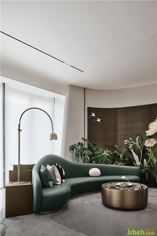 室內(nèi)以樸質(zhì)、自然、生態(tài)的格調(diào)打造,售樓中心設計整體空間界面以素雅的白色為基調(diào),大量使用淺色的溫潤石材鋪陳出干凈塊面的空間底蘊,結(jié)合綠色大理石的適時穿插使空間在素凈自然的風格元素中增加靈動氣息。