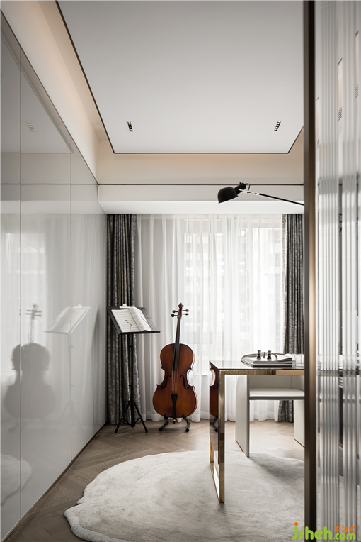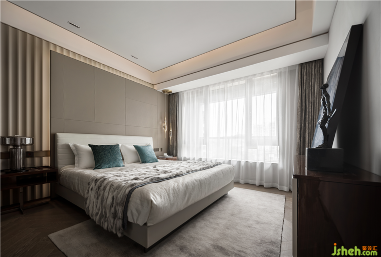 樣板房設(shè)計在色調(diào)上沒有濃墨重彩的渲染,是以最經(jīng)典的色系調(diào)和,令金屬、皮革、石材等多種元素協(xié)調(diào)相處,以永不過時的中性色,來演繹一種低調(diào)的奢華。