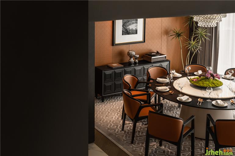 室內(nèi)家具筆直流暢的線條,精致細膩的材質(zhì)紋理,搭配著魅力橙的背景和棕的點綴舒適與奢華并存的理念。