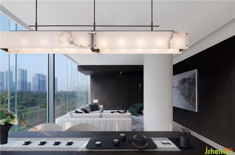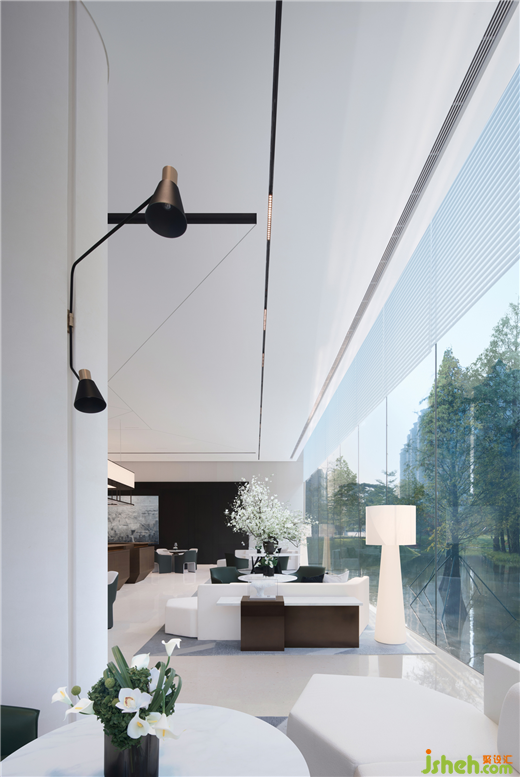 180°圍合面的玻璃幕墻,順德悅府示范區(qū)設(shè)計(jì)將變幻的自然光與公園景致完全納入室內(nèi),追求光與色的交融,形與意的共性,在簡(jiǎn)約質(zhì)樸中見豐富,于光影中見層次。
