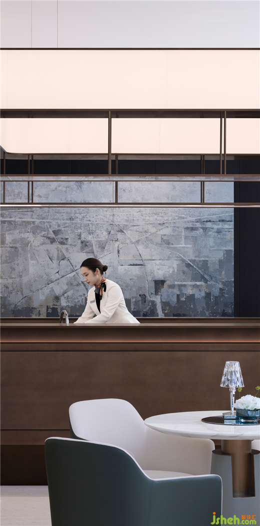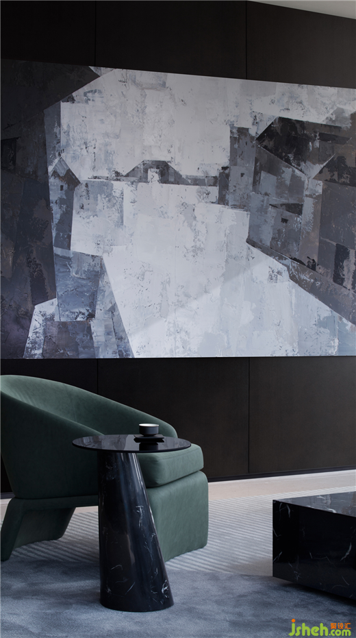 不同的色調(diào)與材質(zhì)肌理進(jìn)一步豐富界面的空間表情,設(shè)計(jì)用材種類很少,注重呈現(xiàn)以簡(jiǎn)單的選材塑造干凈而富有力量的氣場(chǎng)。