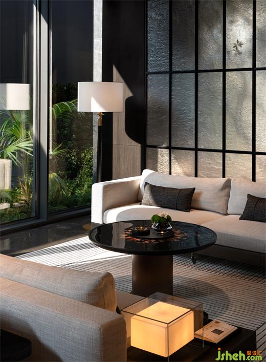靈活的空間布局,一字形沙發(fā)與休閑椅的圍合形式,悠然地坐落于此,目光在窗景中游走,或進或退,無界自由。